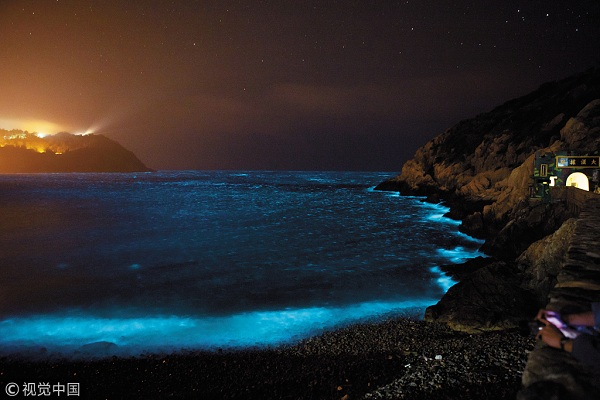 The waters off the coast of Ping Tan Island in southeast China’s Fujian were shimmering with fluorescent plankton, resembling stars falling into the sea. Popularly known as the “Blue Tears” beach is strikingly known for its dark blue that glows against the rocky beach at night. It is a must-see attraction.