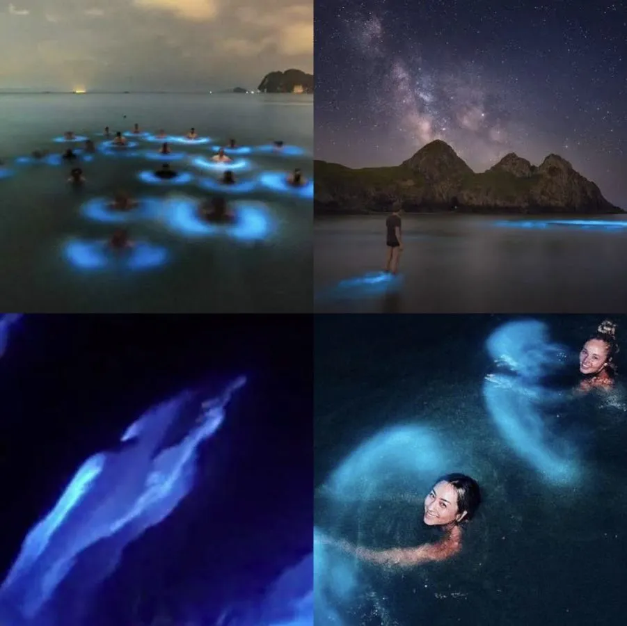 When night falls at Sam Mun Tsai Beach, every step ignites the sea into electric blue, as living plankton turn the shoreline into a glowing, otherworldly dream.