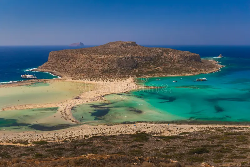Located in the northwestern part of Crete, at the end of the Gramvoussa Peninsula. The lagoon is divided by a sandbar, creating shallow waters that are perfect for swimming and relaxing. Visitor can enjoy swimming, sunbathing, and snorkeling in the clear waters.
